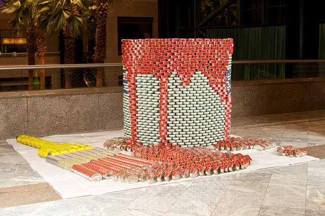 They titled their sculpture “Paint the Town Fed!” It was on display from November 11-22 at the World Financial Center Winter Garden in New York City. All of the food was donated to City Harvest, and visitors to the exhibit were encouraged to donate canned goods as well.