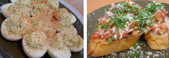 Nothing says picnic like deviled eggs. Try them classed up with our Deviled Crab Eggs recipe. If your outdoor meal is an evening affair, start things off right with Bruschetta with Anchovies (you can toast the Italian bread directly on the grill).