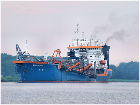 The Geopotes 14 lifting its boom on a canal in The Netherlands. (gēopotēs is Greek for “that which drinks earth”) via Wikimedia Commons